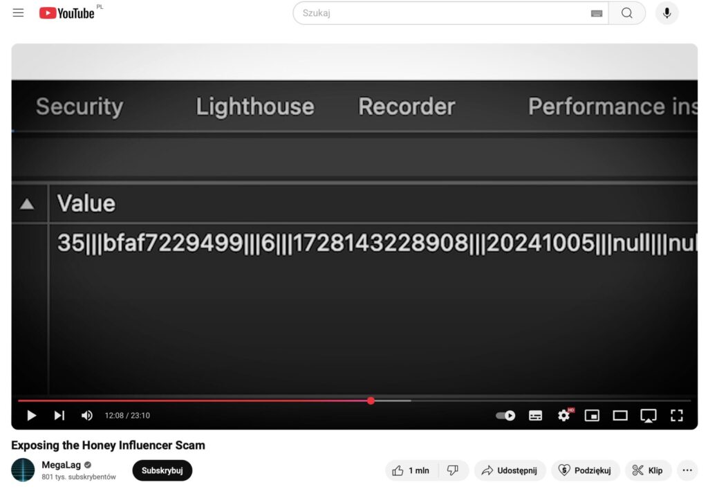 fragment analizy ,,podmiany” pliku cookie | YT @MegaLag LINK